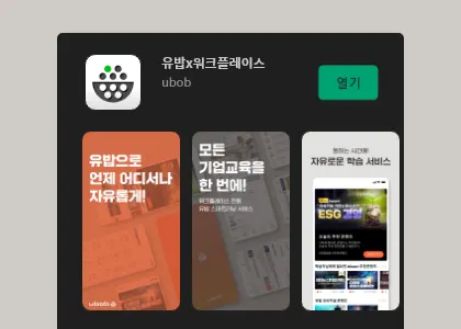 네이버 워크플레이스에서 유밥 바로가기 아이콘을 통해 학습사이트에 접속할 수 있어요.